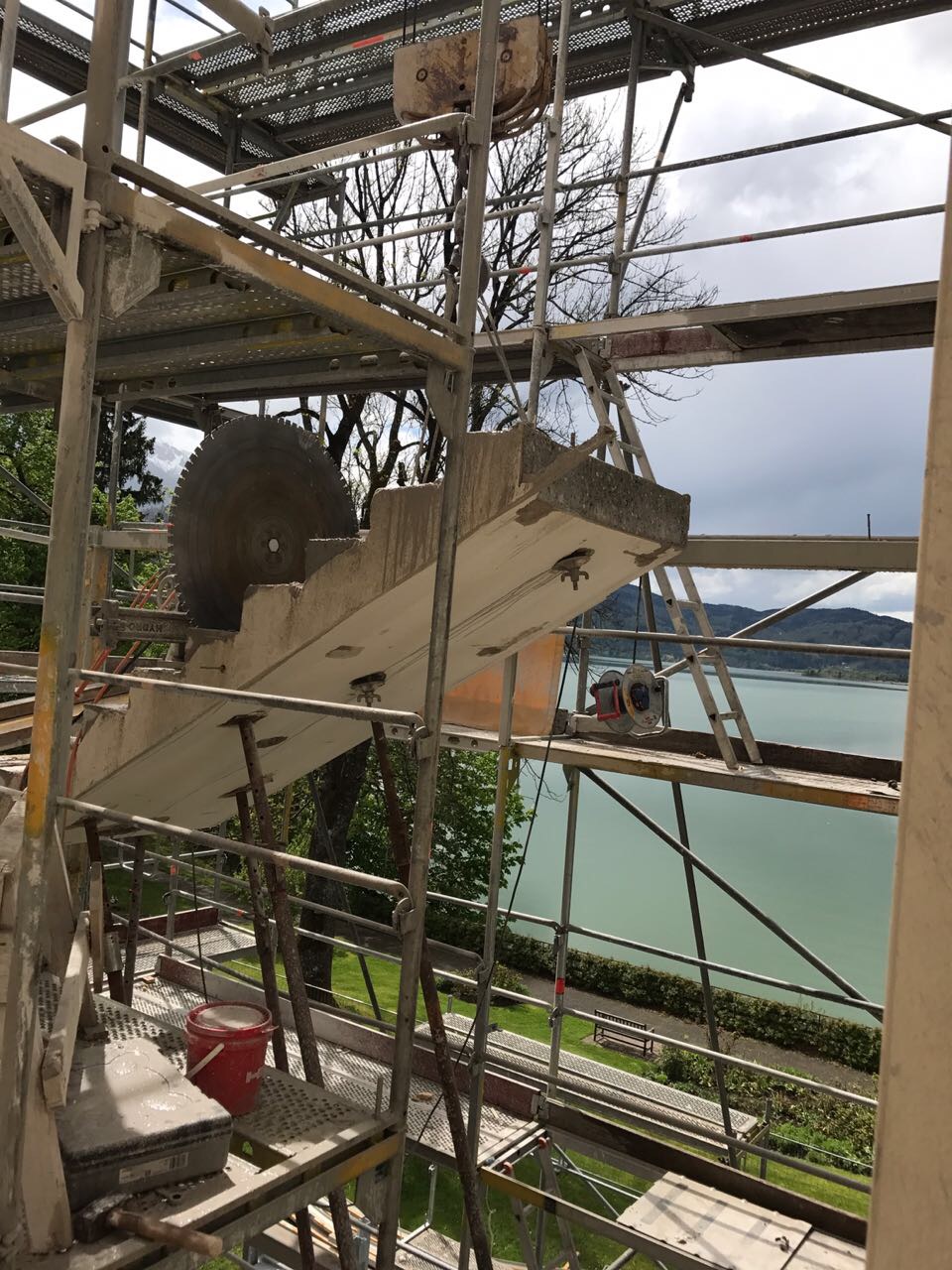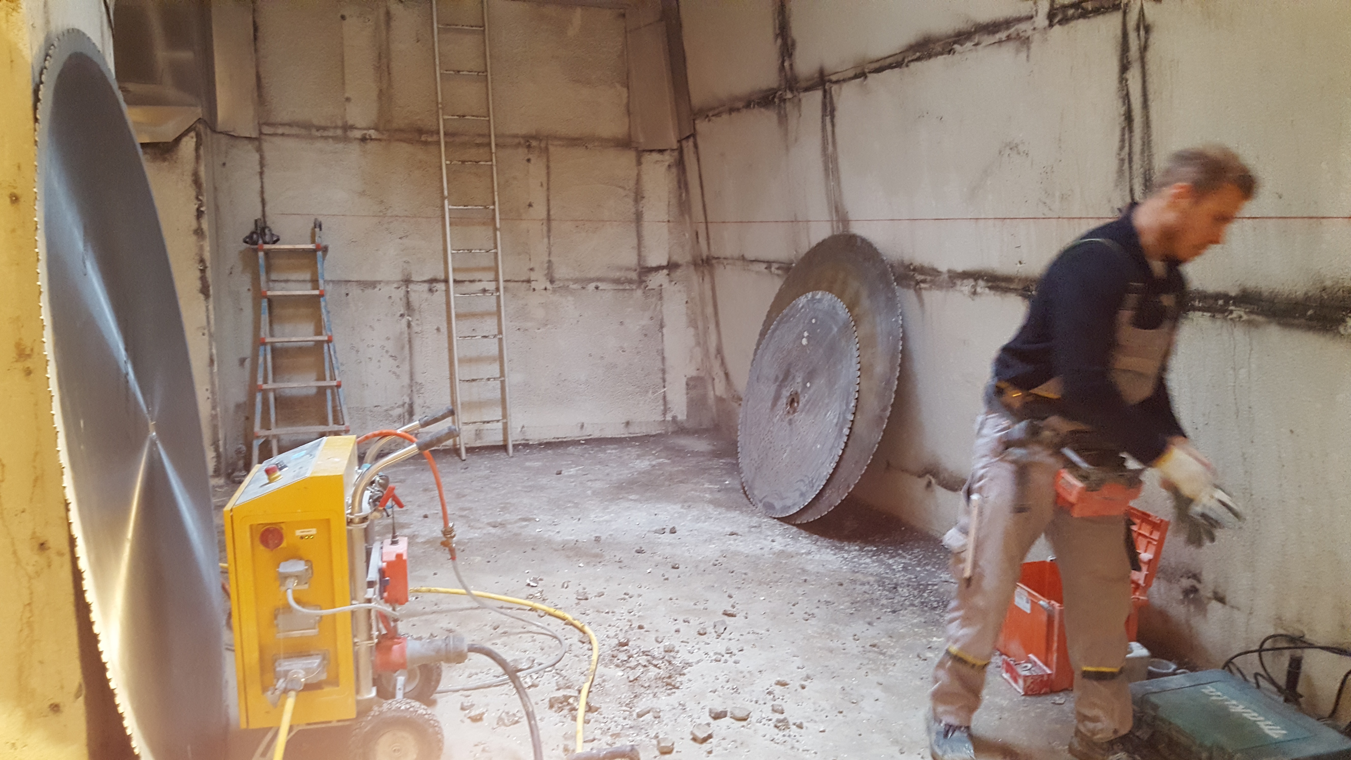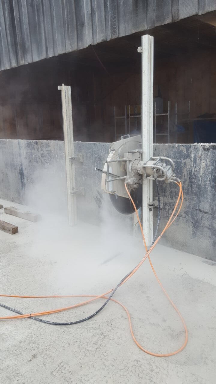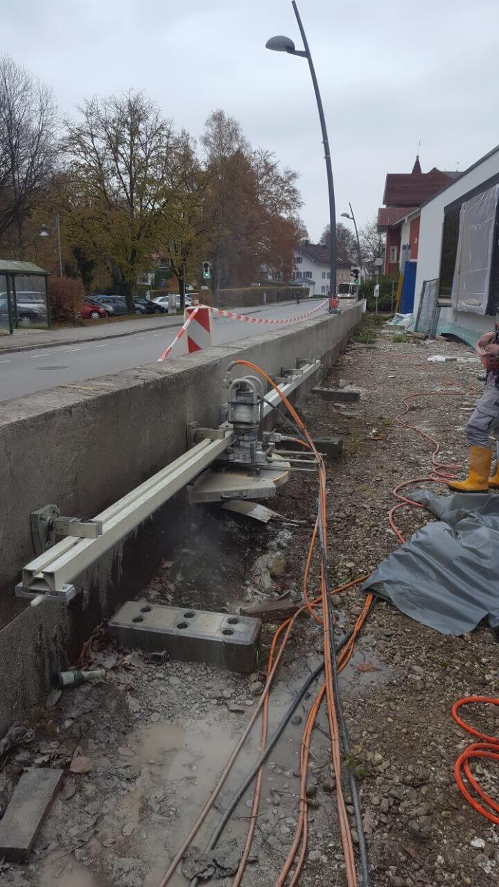 Beim Wandsägen kommt eine schienengeführte Säge zum Einsatz, die hauptsächlich für vertikale Schnitte bis zu 93cm verwendet wird. Einsatzgebiete sind große Aussparungen wie z.B. Fenster und Türen.